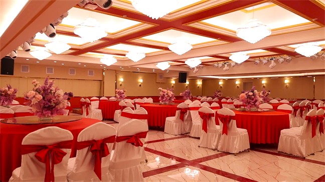 月亮廳—面積249㎡,此廳選用移動(dòng)吧臺(tái) 及移動(dòng)音控設(shè)備,可擺放12張1.8米的宴會(huì)桌。
